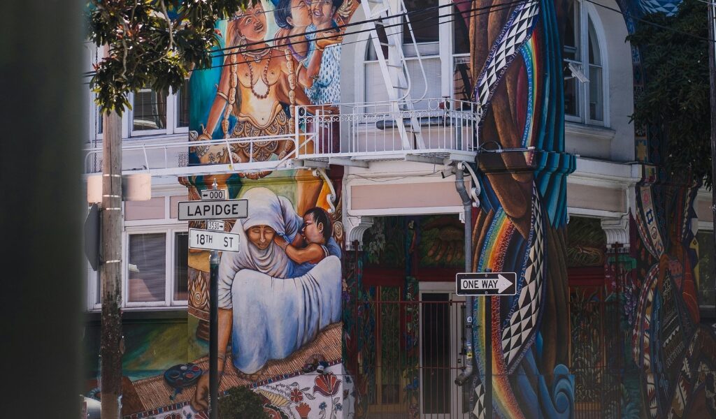 The Mission District is widely recognized for its incredible street art. The neighborhood’s murals tell stories of culture, activism, identity, and community, turning entire streets into open-air galleries.
